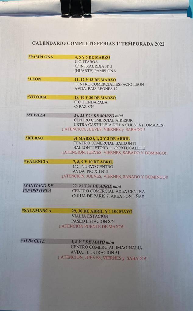 con alguna información de otras webs que ofrecen a veces información de ferias en España