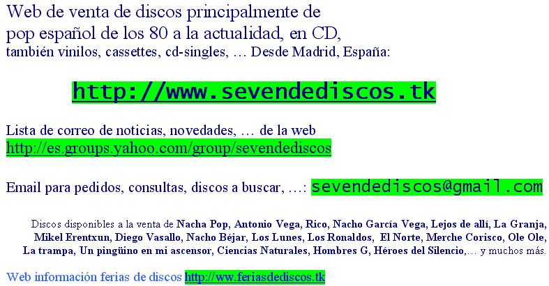 Si quieres colaborar o aportar información, próximas ferias, carteles ferias, ... a esta web, escribe a  sevendediscos @ gmail.com